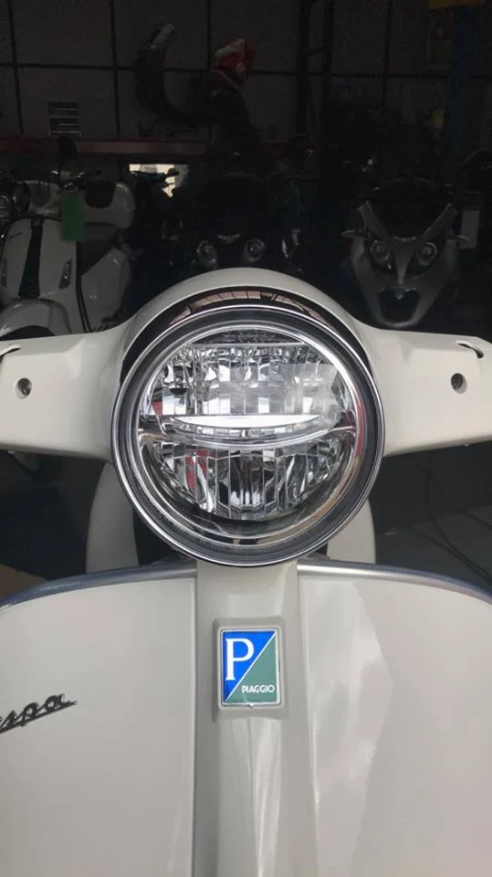 LED-Technologie in Frontscheinwerfer und Rücklicht der 2019er-GTS Modelle tragen zu mehr aktiver Sicherheit bei. Das Beinschild zeigt sich mit neuem Design. Die „Krawatte“ mit ihren feinen Schlitzen liegt jetzt über die gesamte Länge des Schildes an. Neu sind auch die Form der Lenker-/ Lampenabdeckung, die obere Befestigung der Spiegel sowie die Form der verchromten Finne. Ein Chromring umschließt den Scheinwerfer. Die Luftauslassschlitze des Kühlers erhielten eine wabenförmige Struktur. In neuem Design zeigen sich auch die unteren Heckabdeckungen.