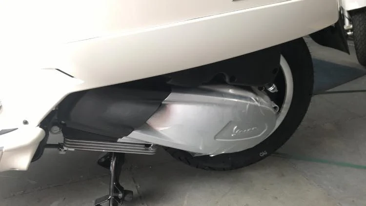 Auch das Getriebe wurde überarbeitet. Die Geometrie und das Material des Antriebsriemens wurden verbessert. Die neue Abdeckung des CVT trägt bei der Vespa GTS zur Reduzierung mechanischer Geräusche zusätzlich eine schalldämmende Isolierung. Ferner wurde eine neue, stabilere Kupplungsglocke montiert.