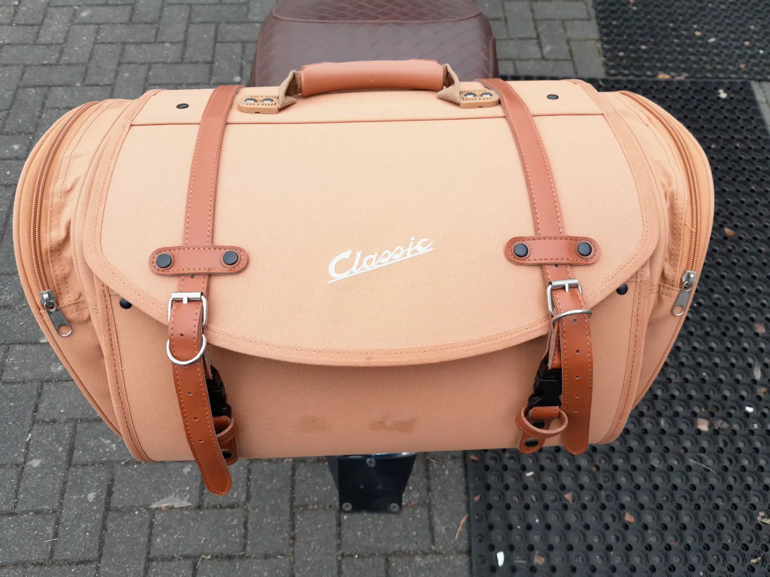 Viel Zubehör!:Chrom Sturzbügel V+H, Custom Sitzbank, Pulverbeschichteter Vari omatikdeckel, Klappgepäckträger hinten mit Tasche ‚Custom‘, Blinker und Rückli cht Zubehör LED, Weißwandreifen und Chrombügel Kotflügel vorne