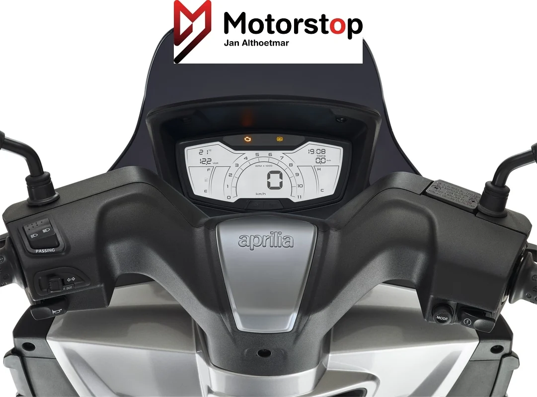 Das digitale LCD-Cockpit des Aprilia SXR 50 liefert alle wichtigen Informationen auf einen Blick. Von der Geschwindigkeit über den Tankinhalt bis hin zu Kilometerstand und Wartungshinweisen – alles ist übersichtlich dargestellt. Die LED-Beleuchtung sorgt für optimale Sicht, sodass Sie auch bei schlechten Lichtverhältnissen sicher unterwegs sind.